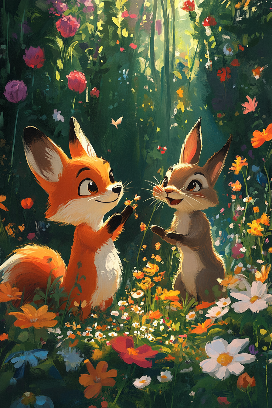 In einem malerischen Wald lebte das Kaninchen Rosie zusammen mit ihren neuen Freunden: Lena die Eule, Max der Fuchs und Luisa das Eichhörnchen. Jedes von ihnen hatte seine eigenen einzigartigen Talente. Rosie war schnell, Lena war klug, Max war listig und Luisa war mutig.